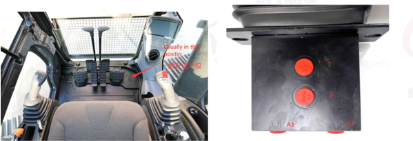 Find the T port and P port of the travel valve, which corresponds to the T port